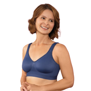 En unik behå i microfiber med en speciell struktur i materialet som ger en micro-masserande effekt. Sömlösa, formade kupor och mjuka lätt vadderade elastiska axelband. Stödjande mjukt och brett band nedtill. Behån är idealisk för kvinnor med lymfödem men är även perfekt till alla som vill ha en bekväm behå att bära hemma eller t.ex. vid sport och fritidsaktiviteter