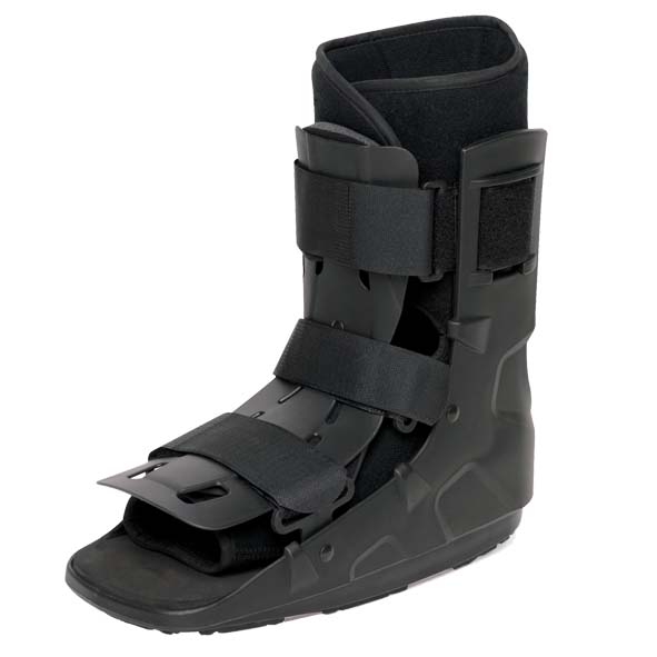 Immobiliserande walker i låg modell, tillverkad av formsprutad polypropene, i en lågvikt-, hållbar och stabil design. Walkern har två fasta sidostöd som ger utmärkt stabilitet för fot och fotled, två rigida valv, ett fram och ett bak, samt en vaddering över vristen för att stärka immobiliseringen. Walkerns inre vadderade textil är fodrad med ett mjukt, luftgenomsläppligt- och tvättbart velourtyg som skyddar mot stötar och säkerställer optimal komfort. Latex fri. Levereras med två extra kondylkuddar för att avlasta vid tryck och för att ge extra komfort. Rullsula med anti-slip tillåter en komplett gångcykel. Justerbara Velcro-band garanterar komplett immobilisering. Anpassad för kilsystem. Röntgengenomsläpplig. Lätt att prova ut.